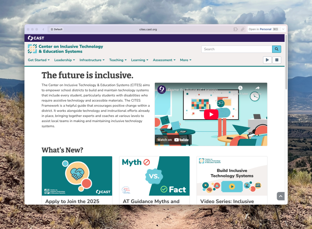 It works alongside technology and instructional efforts already in place, bringing together experts and coaches at various levels to assist local teams in making and maintaining inclusive technology systems.Visit: https://cites.cast.org for more information.