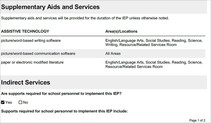 Aside from documenting a student’s current skills and abilities, these pages help the PPT discuss their specific accommodations, AT devices and services, and modifications in the context of their individual needs.