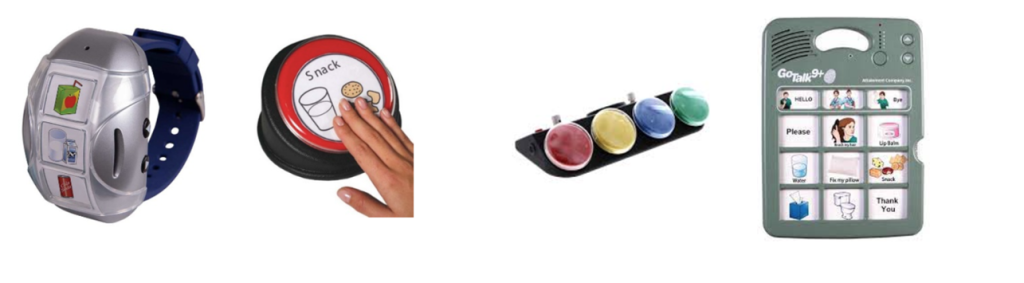 These devices rely on the user touching or exchanging 3-dimensional symbols, miniatures, or objects representing words and vocabulary.